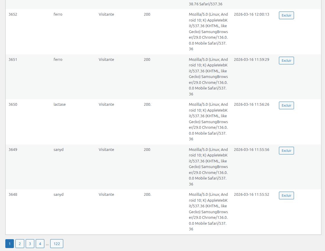 Além da análise de comportamento dos usuários, o sistema também permite identificar padrões de tráfego automatizado através do registro do User Agent das requisições.